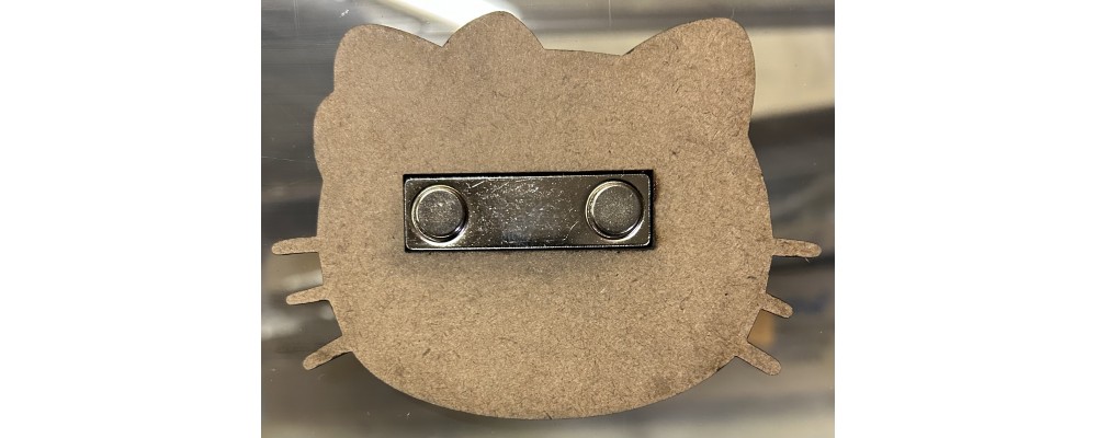 This is a brand-new 2 7/8" x 3 15/16" Hello Kitty refrigerator magnet. The magnet is a reproduction of the original artwork. This high-quality magnet is made of laser etched MDF.